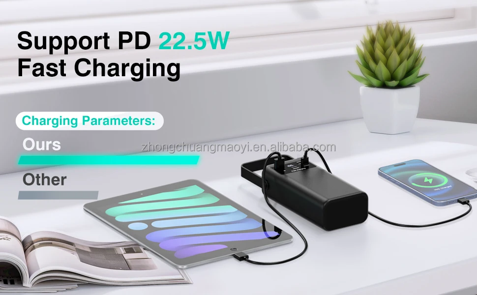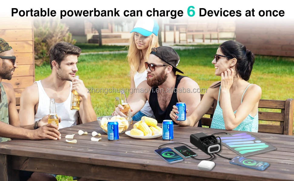 This portable power bank can charge up to 6 devices at once. This travel phone charger has 6 outputs and 3 inputs. You can charge up to 6 devices at the same time and easily recharge the battery with 3 options (USB A cable, 2 USB C ports). One of the USB C ports supports 20W fast charging and recharging. The upgraded USB C interface serves as both input and output, perfectly fitting your new iPhone, iPad, and all upcoming USB C devices. Simply bring one of our external battery banks that can quickly charge multiple smart devices directly, eliminating the need to carry multiple cables and providing a convenient charging solution for your busy lifestyle.
