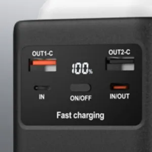 The power bank has a massive 50,000mAh capacity, charges once, lasts a week, providing enough power to keep your smart devices running longer, and never having to worry about running out of power on the go. Ideal for travel, camping, and outdoor activities as a backup battery source.